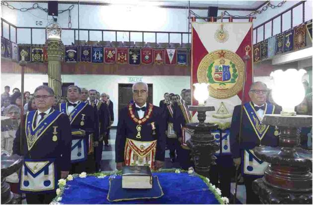 Como primer acto se procedió a rendir homenaje a la Patria cantando el Himno Nacional del Perú ante el Pabellón Nacional conducido previamente en procesión ante el Al.·., finalizado el Himno Nacional, a la voz de ¡Viva el Perú! del Venerable Maestro, la respuesta fue un atronador ¡¡¡Viva!!!, seguido de sonoras y prolongadas palmas. Prosiguiendo con el programa, el R.·.H.·. Manuel Morocho Sánchez, Past V.·.M.·. de la R.·.L.·.S.·. Cruz del Sur Nº 207 del Vall.·. de Lima, en funciones de Capellán, dio lectura al Discurso de Orden, especialmente preparado para esta grata ocasión, además de ofrecer como parte de su participa- ción, una hermosa y sentida canción alusiva a tan especial fecha.