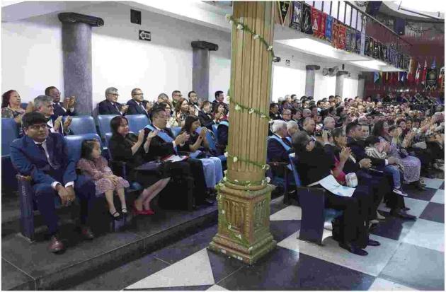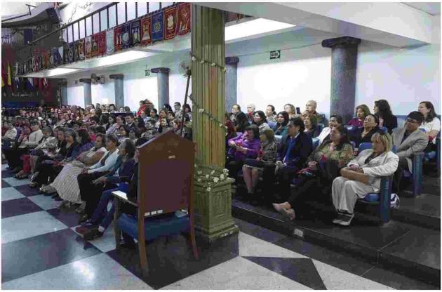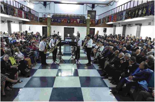 Es importante anotar que la Col.·. de Sur fue destinada para las queridas madres que nos acom- pañaron y la Col.·. del Norte para los miembros de la Ord.·. y caballeros visitantes, tal fue la cantidad de las damas que colmaron el sector Sur que se tuvo que solicitar que nuestros QQ.·. HH.·. Apren- dices Masones y Compañeros Francmasones cedieran sus asientes y ellos pasaran al Mezzannine.
