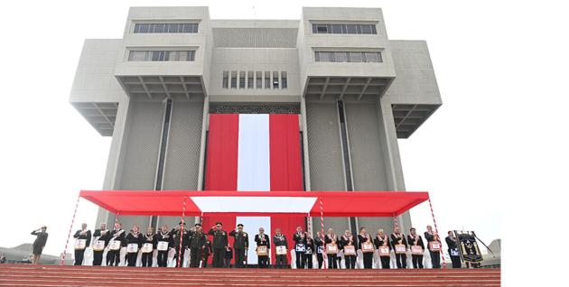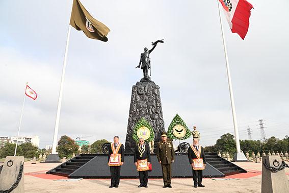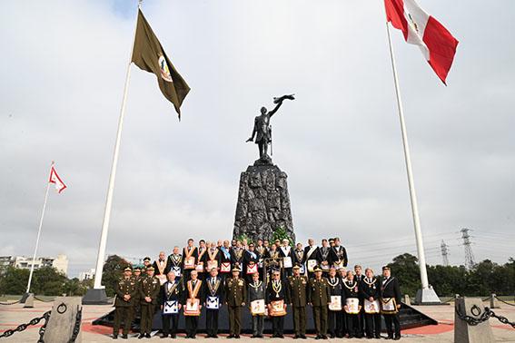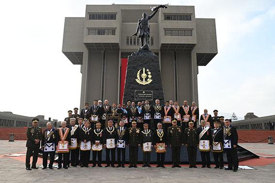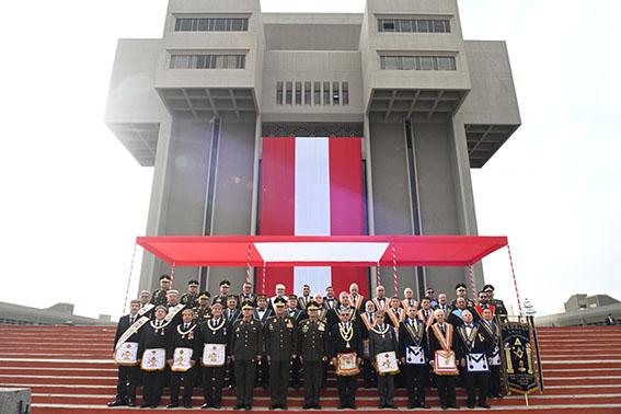 La ceremonia estuvo presidida por el señor General de Ejército, Manuel Gómez de la Torre Araníbar, Jefe del Comando Conjunto de las Fuerzas Armadas, acompañado del señor General de Ejército David Guillermo Ojeda Parra, Comandante General del Ejército y el M.·.R.·.H.·. Mario Carreras Vásquez, Gran Maestro de la Gran Logia del Perú.