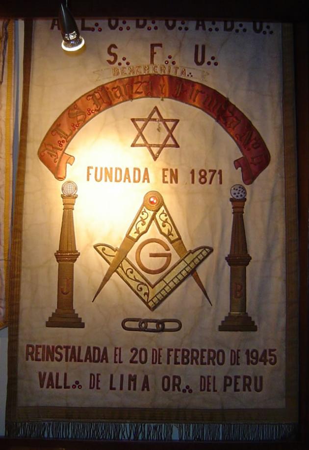 Estandarte de la R.·.L.·.S.·. Manco Cápac N° 35, fundada el 16 de diciembre de 1923 E.·.V.·. en Homenaje al mitico fundador de la cultura Inca, Incario o Incanato