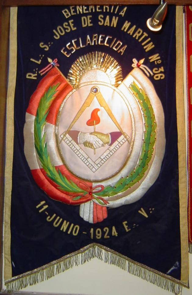 Estandarte de la R.·.L.·.S.·. José de San Martín N° 36 fundada el 11 de junio de 1924 E.·.V.·.