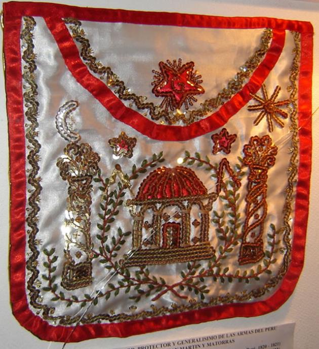 Réplica del mandil usado por el Protector y Generalísimo de las Armas del Perú Don José de San Martín y Matorras durante su permanencia en el Vall.·. de Lima