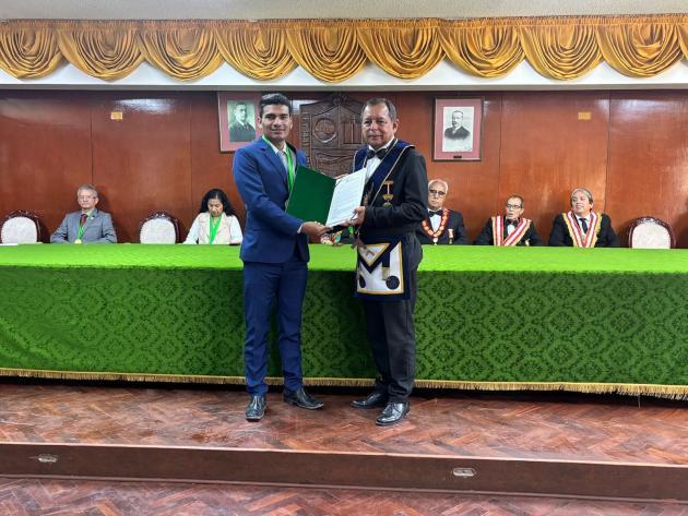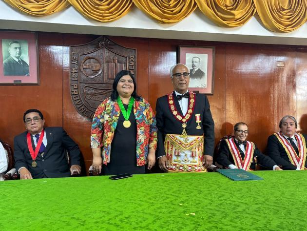 Municipalidad participa en ceremonia y sesión solemne en conmemoración del 145° aniversario del combate de angamos y el 203° aniversario de la marina de guerra del Perú, donde estuvo presente el M.·.R.·.H.·. Carlos Tejeda Rojas, Gran Maestro de la Orden.