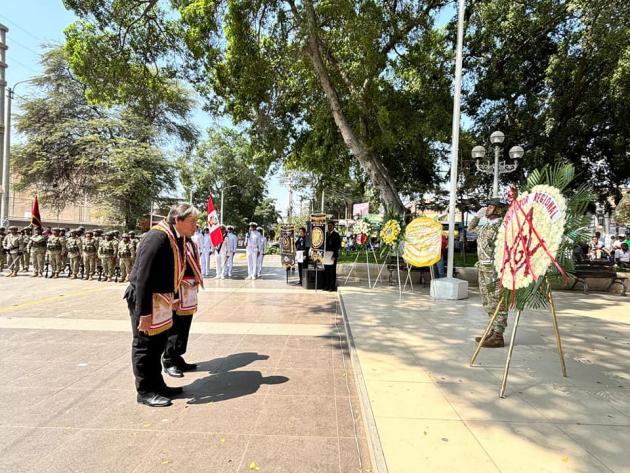 Este martes 8 de octubre, las autoridades de la municipalidad provincial de Sullana junto a las autoridades más destacadas de la provincia de Sullana rindieron homenaje a la Marina de Guerra del Perú por su 203° aniversario de creación y por el 145° aniversario del Combate de Angamos, dónde recordamos a nuestro héroe máximo Miguel María Grau Seminario. En esta ocasión participaron activamente los masones de la Gran Logia del Perú, representados por su Gran Maestro, Carlos Tejeda Rojas y los RR.·. y QQ.·.HH.·. de las diversas Logias de la región.