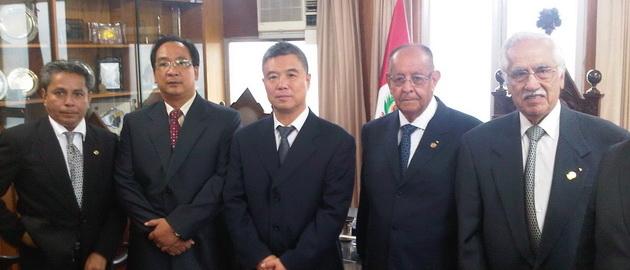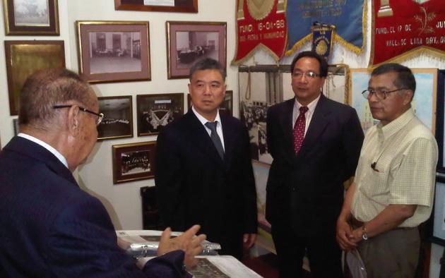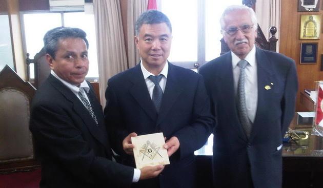 El Martes 01 de febrero pasado, el Embajador de la Republica Popular CHINA, Sr. Zhao Wu Ji visita y recorre las instalaciones de nuestra sede de Corpac, retribuyendo asi la visita que hiciera en virtud a su invitacion, nuestro M.·.R.·.H.·. Victor Ravines Alfaro, Gran Maestro de la Gran Logia del Peru acompañado del R.·.H.·. Galo Moncada Mau, Vice Gran Maestro de la Gran Logia del Peru; del R.·.H.·. Ruben Rozas Ochoa, Secretario de RR.·.PP.·. de la G.·.L.·.P.·. Y EL Q.·.H.·. Cesar Loo, M.·.M.·. de la R.·.L.·.S.·. "Victor Raul Haya de la Torre" Nº 143 del Vall.·. de Lima, el pasado jueves 27 de enero a la EMBAJADA DE LA REPUBLICA POPULAR CHINA, sito en el distrito de San Isidro con motivo de las celebraciones del Año nuevo chino. La Gran Logia del Peru tambien estuvo presente, con la asistencia de nuestro Vice Gran Maestro, el R.·.H.·. Galo Moncada Mau, el día sabado 29 de enero, en la Fiesta de Año Nuevo Chino organizada por la Asociacion Peruano China (APCH) que la preside el Ing. Erasmo Wong Lu, en la que asistio tambien el Señor Embajador. En esta actividad acompañaron a nuestro Vice Gran Maestro el R.·.H.·. Carlos Chiang Wong, V.·.M.·. de la L.·.A.·.B.·.R.·.L.·.S.·. "Tupac Amaru" Nº 42 del vall.·. de Lima y los QQ.·.HH.·. Jose Loo Leon y Carlos Malaga Mendiola de la misma logia, asi como de los QQ.·.HH.·. Cesar Loo y Andres de los Rios de la R.·.L.·.S.·. "Victor Raul Haya de la Torre" Nº 143.