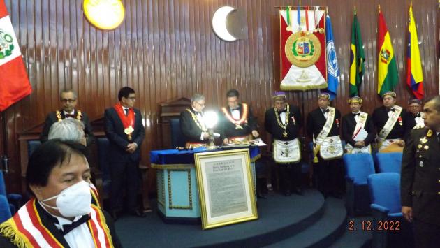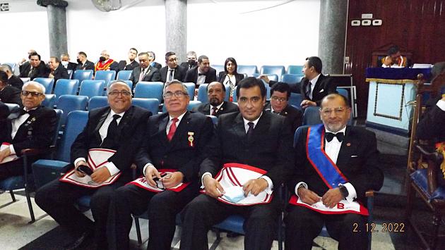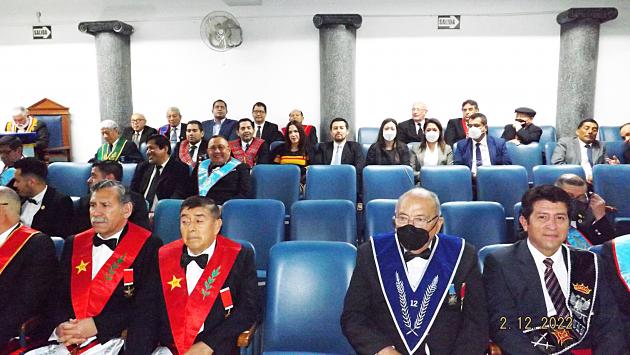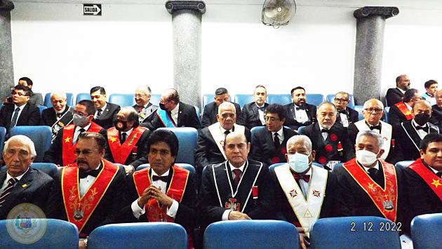 El viernes 02 de diciembre se realizó la Gran Tenida Blanca en el Gran Templo de la Sede Central de la Gran Logia del Perú, en Homenaje al Bicentenario de creación del Primer Congreso Constituyente del Perú, dirigiendo la Ceremonia el M.·.R.·.H.·. Mario Carreras Vásquez, con la presencia del I.·.P.·.H.·. Héctor Farfán Stamp, Soberano Gran Conmendador del Supremo Consejo del R.·.E.·.A.·. y A.·. el M.·.R.·.H.·. César Bazán Naveda, Past Gran Maestro de la Orden y como el invitado de Honor el Sr. José Williams Zapata, Presidente del Congreso del Perú, además de Distinguidos oficiales del Ejército del Perú.