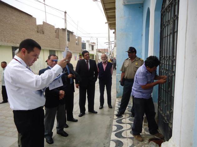 Después de un prolongado litigio, ayer jueves 31 de octubre de 2013, pasadas las 11:30 horas, junto con las fuerzas policiales, la autoridad judicial, el R.•.H.•. David Hurtado Lucero, Venerable Maestro de la Logia Pascual Saco Oliveros Nº 67 de Lambayeque, el R.•.H.•. Jorge Guillermo Pérez Zegarra, Asesor Legar del Gran Maestro, el R.•.H.•. Elmer Calderón Soto. Gran Inspector Regional de la Gran Región Nº 2 – Chiclayo, el M.•.R.•.H.•. Hildebrando Eli Machuca Araujo, Gran Maestro de la Gran Logia del Perú, acompañados de miembros de la logia y numerosos hermanos del Vale, después que un técnico cerrajero abriera las dos cerraduras de la puerta metálica pudimos ingresar a las instalaciones del inmueble de la Calle Junín Nº 535 de la localidad de Lambayeque, que por muchos años mantuvieron en su poder de manera ilegal unos usurpadores.