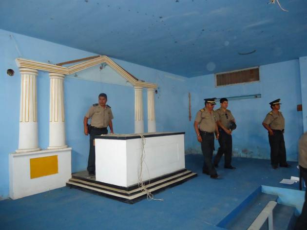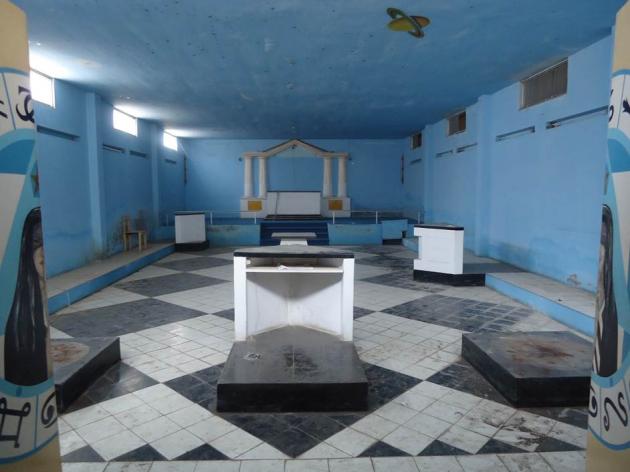 Al ingresar junto con las autoridades mencionadas, pudimos constatar el total abandono total del inmueble, así como su desmantelamiento en muebles, enseres y bienes propios, tanto en los amplios ambientes de la antesala, así como en el templo implementado para los trabajos del Rito de York, en el que no había ningún mueble, ni enseres del templo, ni luminarias de ningún tipo, así como tampoco las columnas J y B, solo se encontraban lo que una vez fueron las bases de dichas columnas.