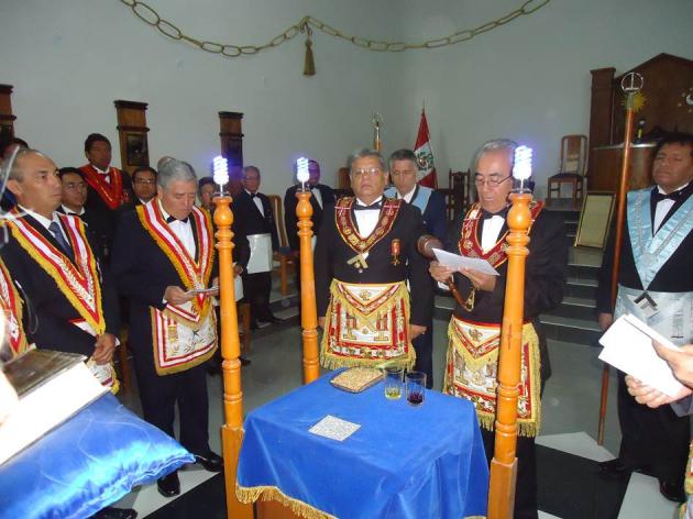 De acuerdo a ancestrales rituales, la solemne ceremonia de Consagración de un templo es conducida únicamente por el Gran Maestro o de un Past Gran Maestro por delegación del primero, a la hora convenida, se hizo presente el M.·.R.·.H.·. Hildebrando Elí Machuca Araujo, Gran Maestro de la Gran Logia del Perú y los miembros de su Gran Comitiva, integrado por el R.·.H.·. Mario carreras Vásquez, Vice Gran Maestro de la Gran Logia del Perú, el R.·.H.·. Abel Contreras Sufling, Gran orador de la Gran Logia del Perú, el R.·.H.·. Jaime Lucio Rodríguez Valdivia, Gran Secretario de la Gran Logia del Perú, el R.·.H.·. Willy Hernán Cavero Valdivia, Gran Director de Ceremonias de la Gran Logia del Perú, el R.·.H.·. Fernando Britto Obregón, Gran Director de Protocolo de la Gran Logia del Perú, el R.·.H.·. Roque Zúñiga Castillo, Secretario Personal del Gran Maestro, el R.·.H.·. Cesar del Castillo Reátegui, Gran Inspector Regional de la Gran Región Nº 12 – Tarapoto, Moyobamba, Chachapoyas y Yurimaguas, el R.·.H.·. Roberto López Cahuaza, Gran inspector Zonal de la Zona Nº 2, de la Gran Región Nº 12 - Tarapoto, Moyobamba, Chachapoyas y Yurimaguas, el R.·.H.·. David Ninahuaman Poma, V.·.M.·. de la R.·.L.·.S.·. Fraternidad y Justicia Nº 142 del Vall.·. de Lima y el R.·.H.·. Santiago Campos Rodríguez, V.·.M.·. de la R.·.L.·.S.·. De Lima Nº 144 del Vall.·. de Lima.
