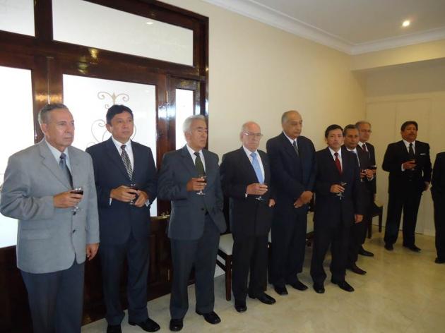 Momentos previos, se había realizado la entrega de credencial de Gran Maestro de la Gran Logia del Perú al R.·.H.·. Galo Jesús Moncada Mau y la credencial de Vice Gran Maestro de la Gran Logia del Perú al R.·.H.·. Edgard Neyra Bardales en el Templo Honor y Progreso del 3er. Piso.