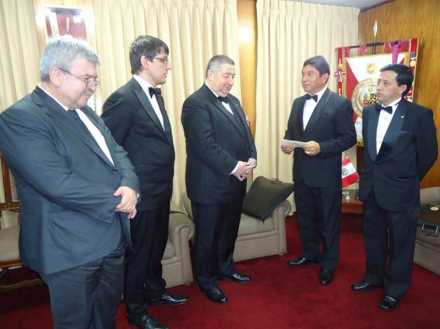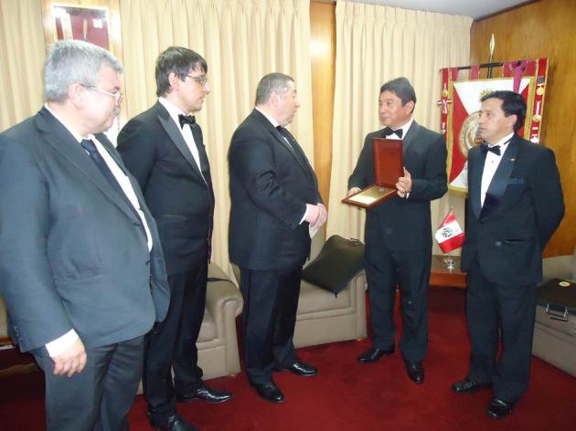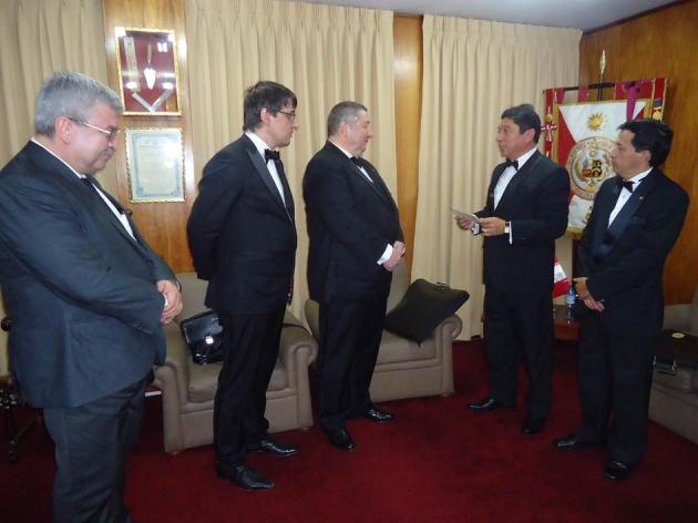 El martes 25 de marzo de 2014 , después de la solemne conmemoración del 132º Aniversario de la Gran Logia del Perú y la imponente Instalación del Gran Maestro y Vice Gran Maestro, reunidos en el gabinete del Gran Maestro, el M.•.R.•.H.•. Volodya Lozanov, Past Gran Maestro Inmediato de la Gran logia de Bulgaria, en compañía del R.•.H.•. Emil Harsev, Gran Secretario de la Gran Logia de Bulgaria y del R.•.H.•. Ángel Kabakchiev, Vicarius del Gran Secretario y Venerable Maestro de la R.•.L.•.S.•. Victor Raúl Hay de Torre de Bulgaria, en representación de la Gran Logia del Bulgaria, hizo entrega de US$ 5.000,00 (Cinco mil Dólares americanos) al M.•.R.•.H.•. Galo Jesús Moncada Mau, Gran Maestro de la M.•.R.•. Gran Logia de los AA.•. LL.•. y AA.•. Masones de la República del Perú, para ser dedicados a mejorar las instalaciones del Colegio Arturo Padilla Espinoza de Ventanilla, que está a cargo de la Gran Logia del Perú