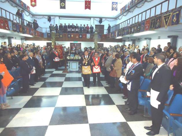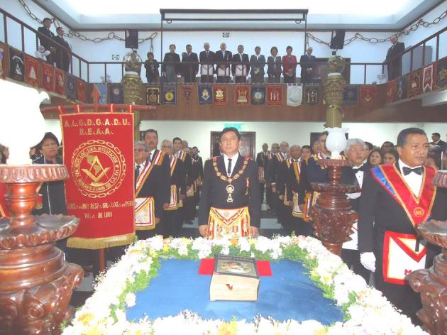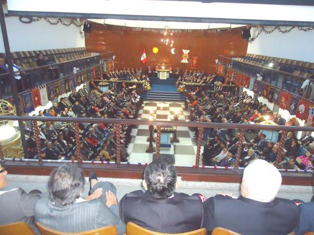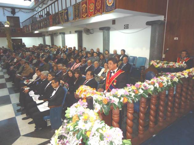 Estando todo preparado, se procedió a imponente y magna recepción del M.·.R.·.H.·. Galo Jesús Moncada Mau, Gran Maestro de la M.·.R.·. Gran Logia del Perú y su numerosa Gran Comitiva, quien fue recibido con calurosas palmas de bienvenida, para luego ser conducido al Or.·. por el R.·.H.·. José Santos Gamarra Soto, V.·.M.·. de la B.·.R.·.L.·.S.·. Integración Nº 149 del Vall.·. de Lima. Al ingreso del Gran Maestro el Gran Templo se encontraba hermosamente decorado por la presencia de nuestros invitados que colmaban todas sus instalaciones, especialmente nuestras distinguidas damas que junto a preciosas flores multicolores engalanaban por doquier nuestra ceremonia.