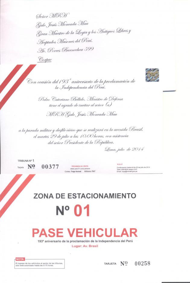 Por primera vez en la historia, la Gran Logia del Perú fue invitada a la Tribuna Presidencial de la Parada y Desfile Civico Militar por Fiestas Patrias, realizado el 29 de Julio en la Av. Brasil.