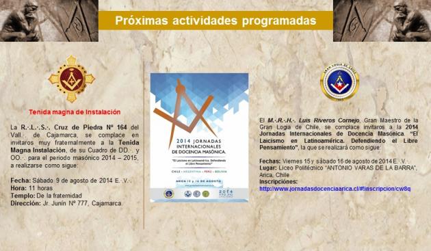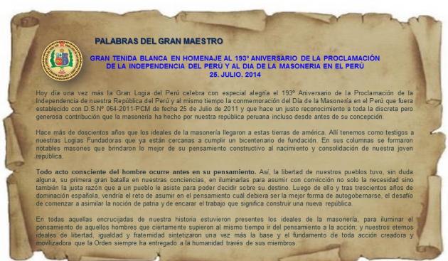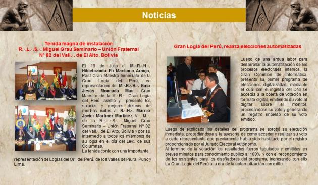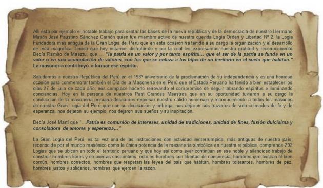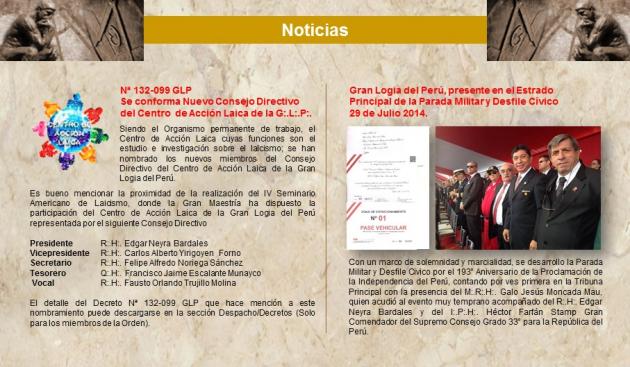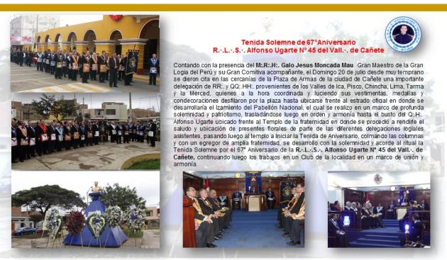 Compartimos con vosotros el Boletín Digital de la Gran Logia del Perú Nº 2 , presentación que contiene actividades diversas del M.•.R.•.H.•. Galo Jesús Moncada Mau, Gran Maestro de la Gran Logia del Perú y de las logias de la jurisdicción.