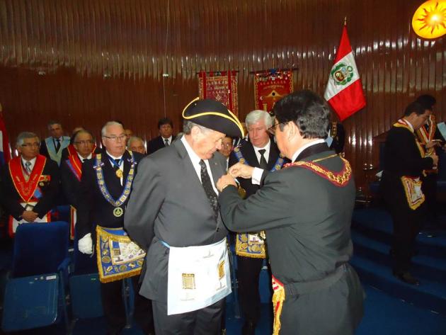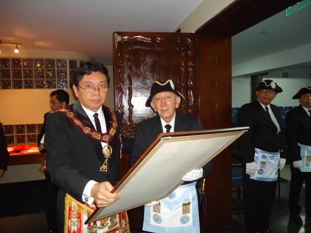 Finalmente, el M.·.R.·.H.·. Galo Jesús Moncada Mau, Gran Maestro de la M.·.R.·. Gran Logia de los AA.·. LL.·. y AA.·. Masones de la República del Perú, con palabras de profunda sabiduría y mucha facundia, felicitó de manera muy fraternal al R.·.H.·. Bernard Belligand Sequi, V.·.M.·. de la R.·.L.·.S.·. Jean Baptiste Willermoz Nº 202 del Vall.·. de Lima y por su intermedio a los 17 HH.·. que componen la nueva logia, como prueba de la complacencia de la Gran Logia del Perú, le hizo entrega de un pergamino en congratulación y reconocimiento por instaurar en la Gran Logia del Perú un nuevo rito como una nueva vía más para hacer masonería.