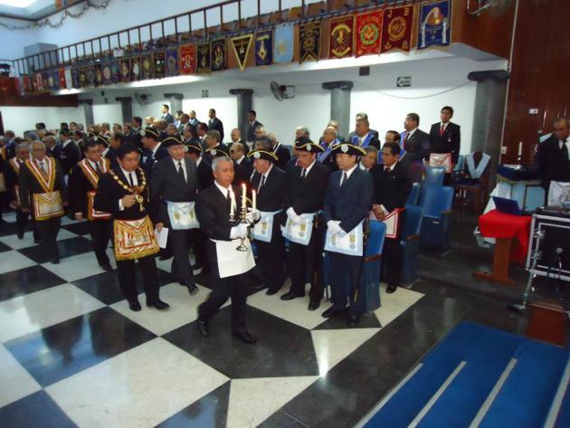 Se dio inicio a la solemne ceremonia de Lev.·. de CCol.·. de la R.·.L.·.S.·. Jean Baptiste Willermoz Nº 202 del Vall.·. de Lima con la presencia del M.·.R.·.H.·. Galo Jesús Moncada Mau, Gran Maestro de la M.·.R.·. Gran Logia de los AA.·. LL.·. y AA.·. Masones de la República del Perú y su Gran Comitiva en el parvis del Gran Templo, la Gran Comitiva se encontraba compuesto por el R.·.H.·. Edgard Neyra Bardales, Vice Gran Maestro de la Gran Logia del Perú, el M.·.R.·.H.·. Víctor Ravines Alfaro, Past Maestro de la Gran Logia del Perú, el R.·.H.·. Roger Basauri Olaya, Primer Gran Vigilante de la Gran Logia del Perú, el R.·.H.·. Carlos Tejeda Rojas, Segundo Gran Vigilante de la Gran Logia del Perú, el R.·.H.·. Richard Bustamante Morote, Gran Secretario de la Gran Logia del Perú, R.·.H.·. Julio Sandoval Lizama, Gran Tesorero de la Gran Logia del Perú, el R.·.H.·. Fernando Hurtado Lizárraga, Gran Director de Ceremonias de la Gran Logia del Perú, el R.·.H.·. Alejandro Cuba Martínez, Gran Primer Diácono de la Gran Logia del Perú, el R.·.H.·. José Collado Guardia , Segundo Diácono de la Gran Logia del Perú, el R.·.H.·. Carlos Alberto Yrigoyen Forno, Gran Canciller de la Gran Logia del Perú, el R.·.H.·. Max Velarde Sánchez, Gran Guarda Mayor de la sede central Julio F. de Iriarte de la Gran Logia del Perú de San Isidro, el R.·.H.·. Fernando Britto Obregón, Gran Director de Prensa de la Gran Logia del Perú, el R.·.H.·. Arturo Gutierrez Vidalón,Segundo Gran Vigilante Adjunto de la Gran Logia del Perú, el R.·.H.·. José Mita Salina, Gran Orador Adjunto de la Gran Logia del Perú, el Q.·.H.·. Siebel Hurtado de La Rosa, Gran Bibliotecario Adjunto de la Gran Logia del Perú, el R.·.H.·. José Roque Zúñiga Castillo, Secretario Personal del Gran Maestro, el Q.·.H.·. Jesús Egoavil Dorregaray, Secretario Personal Adjunto del Gran Maestro y el Q.·.H.·. Jorge Saco Márquez, Secretario Personal Adjunto del Gran Maestro. Así mismo, formaron parte de la Gran Maestro, el R.·.H.·. Eliphas Almeida, Gran Inspector de la Gran Logia Nacional Francesa, el R.·.H.·. Jean Pierre Rollet, Gran Canciller de la Gran Logia Nacional Francesa y el R.·.H.·. Patrick Faure, Past Gran Inspector de la Gran Logia Nacional Francesa.