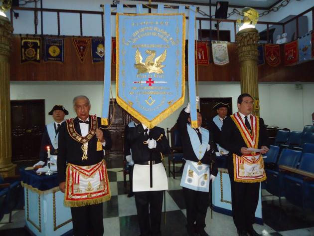 A continuación se realizó la solemne ceremonia de consagración de su estandarte, la que luego de ser proclamada a los cuatro vientos fue conducido y colocado en su sitial de honor en el Or.·., fueron los padrinos, el M.·.R.·.H.·. Víctor Ravines Alfaro, Past Maestro de la Gran Logia del Perú y el Q.·.H.·. José Manuel Loo León, M.·. M.·. de la R.·.L.·.S.·. Jean Baptiste Willermoz Nº 202 del Vall.·. de Lima.