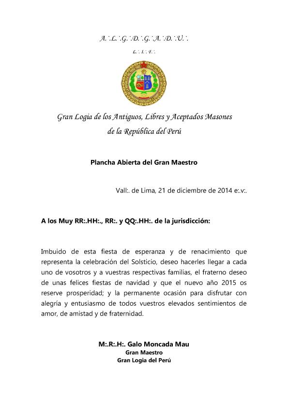 Pl:. Abierta del Gran Maestro por Solsticio de Verano y Navidad