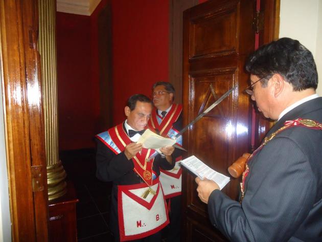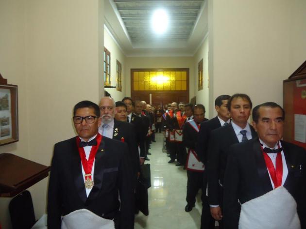 De acuerdo a ancestrales rituales, estando todo dispuesto en el parvis y los alrededores, se hizo presente el M.·.R.·.H.·. Galo Jesús Moncada Mau, Gran Maestro de la M.·.R.·. Gran Logia de los AA.·. LL.·. y AA.·. Masones de la República del Perú y los miembros de su Gran Comitiva, integrado por el R.·.H.·. Edgard Neyra Bardales, Vice Gran Maestro de la Gran Logia del Perú, el M.·.R.·.H.·. Hildebrando Elí Machuca Araujo, Past Gran Maestro Inmediato de la Gran Logia del Perú, el R.·.H.·. Roger Basauri Olaya, Primer Gran Vigilante de la Gran Logia del Perú, el R.·.H.·. Carlos Tejeda Rojas, Segundo Gran Vigilante de la Gran Logia del Perú, el R.·.H.·. David Delgado Hidalgo,