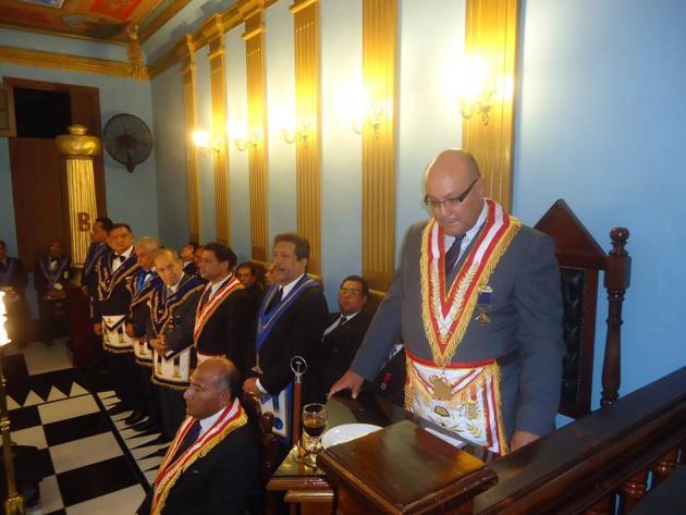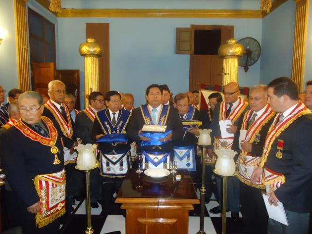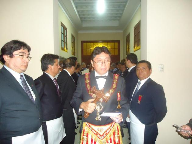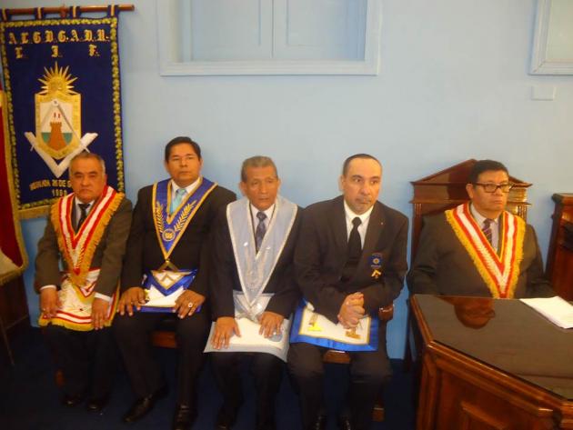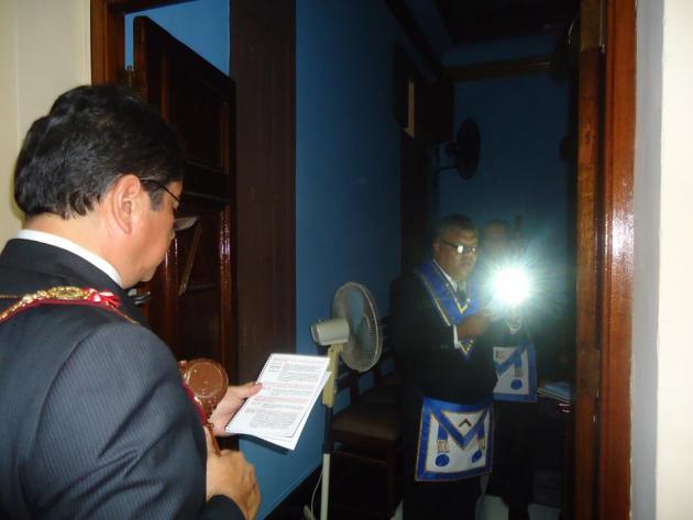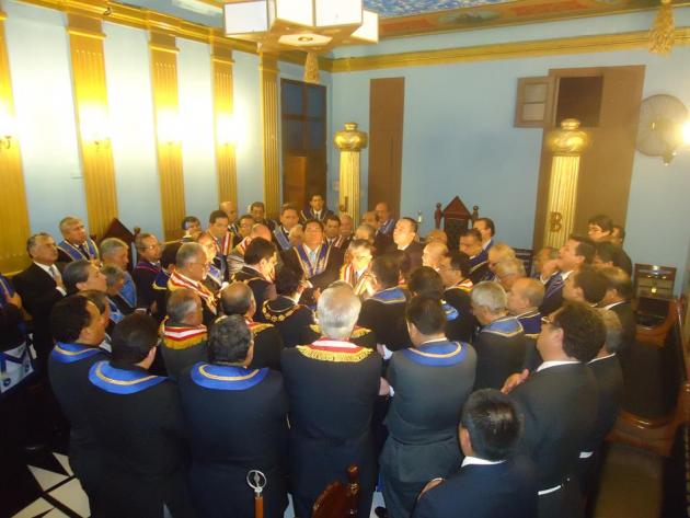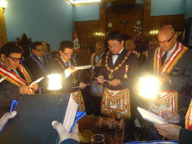 De acuerdo a nuestros antiguos ceremoniales, con todo dispuesto y preparado ante el parvis y pasajes de los alrededores, hizo su ingreso entre dos columnas el M.·.R.·.H.·. Galo Jesús Moncada Mau, Gran Maestro de la M.·.R.·. Gran Logia de los AA.·. LL.·. y AA.·. Masones de la República del Perú, seguido de los miembros de su Gran Comitiva, integrado por el R.·.H.·. Edgard Neyra Bardales, Vice Gran Maestro de la Gran Logia del Perú, el M.·.R.·.H.·. Ismael Cornejo Alvarado, Past Gran Maestro de la Gran Logia del Perú, el R.·.H.·. Roger Basauri Olaya, Primer Gran Vigilante de la Gran Logia del Perú, el R.·.H.·. Carlos Tejeda Rojas, Segundo Gran Vigilante de la Gran Logia del Perú, el R.·.H.·. David Delgado Hidalgo, Gran Orador de la Gran Logia del Perú, el R.·.H.·. Richard Bustamante Morote, Gran Secretario de la Gran Logia del Perú, el R.·.H.·. Julio Sandoval Lizama, Gran Tesorero de la Gran Logia del Perú, el R.·.H.·. Fernando Hurtado Lizárraga, Gran Director de Ceremonias de la Gran Logia del Perú, el R.·.H.·. Alejandro Martínez Cuba, Primer Gran Diácono de la Gran Logia del Perú, el R.·.H.·. José Collado Guardia, Segundo Gran Diácono de la Gran Logia del Perú, el R.·.H.·. Carlos Alberto Yrigoyen Forno, Gran Canciller de la Gran Logia del Perú, el Q.·.H.·. Felipe Reinoso Cervantes, Gran Canciller Adjunto de la Gran Logia del Perú, el R.·.H.·. José Barco Avellaneda, Gran Secretario de las Regiones de la Gran Logia del Perú, el R.·.H.·. Félix Prieto Zavaleta, Gran Guarda mayor de la sede histórica Jesús García Maldonado de la Gran Logia del Perú del Cercado de Lima, el R.·.H.·. Fernando Britto Obregón, Gran Director de Prensa de la Gran Logia del Perú, el Q.·.H.·. Jorge Saco Márquez, Secretario Personal Adjunto del Gran Maestro, además del R.·.H.·. Ramón Cueva Cruzado, Gran Inspector Regional de la Gran Región Nº 14 – Cercado de Lima.