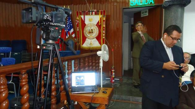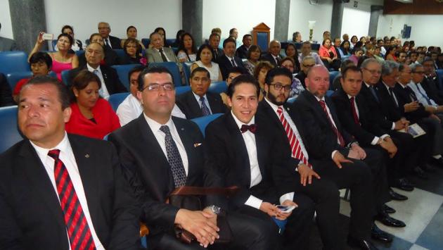 Se dio inicio a la presentación a continuación del ingreso al Gran Templo del M.·.R.·.H.·. Galo Jesús Moncada Mau, Gran Maestro de la M.·.R.·. Gran Logia de los AA.·. LL.·. y AA.·. Masones de la República del Perú y su Gran Comitiva, quien fue recibido de pie con una nutrida salva de fuertes palmas de parte de la concurrencia, conformaban parte de la numerosa Gran Comitiva el R.·.H.·. Edgard Neyra Bardales, Vice Gran Maestro de la Gran Logia del Perú, el M.·.R.·.H.·. Martín Dávila Bello, Gran Maestro de la M.·.R.·. Gran Logia Valle de México del Or.·. de los Estados Unidos Mexicanos, el M.·.R.·.H.·. Hildebrando Elí Machuca Araujo, Past Gran Maestro Inmediato de la Gran Logia del Perú, el M.·.R.·.H.·. Víctor Augusto Ravines Alfaro, Past Gran Maestro de la Gran Logia del Perú, el M.·.R.·.H.·. Tomás Álvarez Manrique, Past Gran Maestro de la Gran Logia del Perú y Secretario Ejecutivo de la Confederación Masónica Interamericana - CMI, el R.·.H.·. Roger Basauri Olaya, Primer Gran Vigilante de la Gran Logia del Perú, el R.·.H.·. Carlos Tejeda Rojas, Segundo Gran Vigilante de la Gran Logia del Perú, el R.·.H.·. Richard Bustamante Morote, Gran Secretario de la Gran Logia del Perú, el R.·.H.·. Fernando Hurtado Lizárraga, Gran Director de Ceremonias de la Gran Logia del Perú, el R.·.H.·. Alejandro Martínez Cuba, Primer Gran Diácono de la Gran Logia del Perú, el R.·.H.·. José Collado Guardia, Segundo Gran Diácono de la Gran Logia del Perú, el R.·.H.·. Willy Cavero Valdivia, Gran Diácono de Protocolo de la Gran Logia del Perú, el R.·.H.·. Fernando Britto Obregón, Gran Director de Prensa de la Gran Logia del Perú, el R.·.H.·. Leonardo Serval Gonzáles, Gran Abanderado de la Gran Logia del Perú, entre otros.