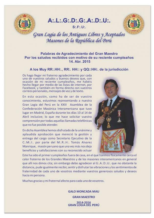 Agradecimiento del Gran Maestro por saludo de cumpleaños