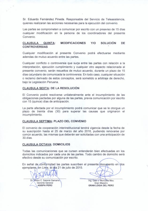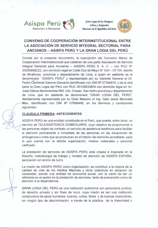 GRAN LOGIA FIRMA CONVENIO CON ASISPA PERU