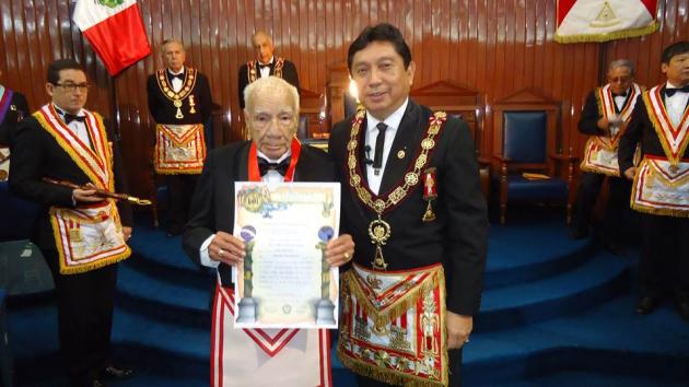 El M.·.R.·.H.·. Galo Jesús Moncada Mau, Gran Maestro de la M.·.R.·. Gran Logia de los AA.·. LL.·. y AA.·. Masones de la República del Perú, hizo entrega del gallardete correspondiente a los Venerables de Maestros de las logias mencionadas.