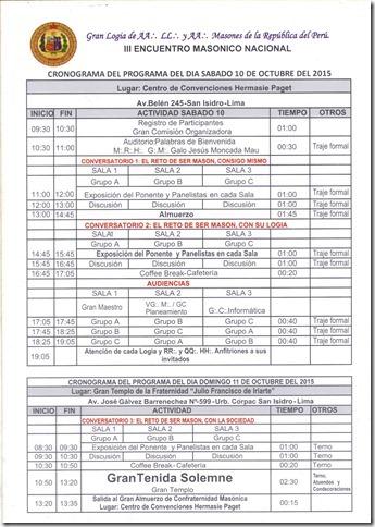 El sábado 10 y domingo 11 se realizó el Tercer Encuentro Masónico Nacional, con la participación de todas las logias jurisdiccionadas a la Gran Logia del Perú y cuyo tema principal fue "El reto de ser masón hoy".