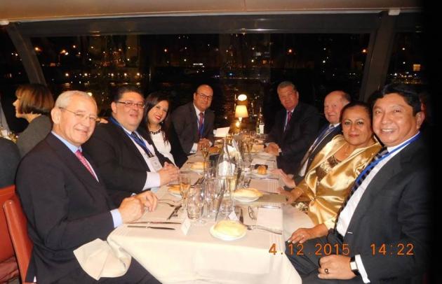 Es importante destacar, que de la Gran Tenida en conmemoración del 102º Aniversario de la Gran Logia nacional Francesa y la solemne instalación del M.·.R.·.H.·. Jean Pierre Servel, como Gran Maestro, contó con una asistencia estimada de 2.300 HH.·., y la participación de cerca de 60 delegaciones extranjeras acreditadas, entre ellas la del Perú, presidida por el M.·.R.·.H.·. Galo Jesús Moncada Mau, Gran Maestro de la M.·.R.·. Gran Logia de los AA.·. LL.·. y AA.·. Masones de la República del Perú, integrando también dicha delegación se encontraba Lili, la amada esposa del Gran Maestro. La solemne ceremonia de instalación del M.·.R.·.H.·. Jean Pierre Servel, como Gran Maestro, estuvo a cargo del M.·.W.·. Peter Lowndes, Pro Gran Maestro de la Gran Logia Unida de Inglaterra, en este punto destacamos, importante participación del M.·.R.·.H.·. Galo Jesús Moncada Mau, Gran Maestro de la M.·.R.·. Gran Logia de los AA.·. LL.·. y AA.·. Masones de la República del Perú, quien fue nominado en el rol de los 9 Grandes Maestro que participaron de la Concesión de la Palabra, en el orden siguiente: el M.·.W.·. Peter Lowndes, Pro Gran Maestro de la Gran Logia Unida de Inglaterra, el M.·.R.·.H.·. Charles Iain Robert Gordon Wolrige de Esslemont, Gran Maestro de la Gran Logia de Escocia (The Grand Lodge of Scotland), el M.·.R.·.H.·. Radu Balanescu, Secretario Ejecutivo del World Conference of Regular Masonic Grand Lodges, el M.·.R.·.H.·. Oscar de Alfonso, Gran Maestro de la Gran Logia de España y Presidente de la Confederación Masónica Interamericana – CMI, el Gran Maestro de la Gran Logia del Estado de Israel, un Gran Maestro de África, el M.·.R.·.H.·. Galo Jesús Moncada Mau, Gran Maestro de la M.·.R.·. Gran Logia de los AA.·. LL.·. y AA.·. Masones de la República del Perú, un Gran Maestro de una Gran Logia de los Estados Unidos de América y otro Gran Maestro más. Como era de esperar de nuestra parte, la participación de nuestro Gran maestro en el rol de oradores fue excepcional, recibiendo al final de su participación las consiguientes felicitaciones y reconocimiento de propios y visitantes por la profundidad de su mensaje y el contenido y la sabiduría vertidas a en los conceptos y temas tratados.
