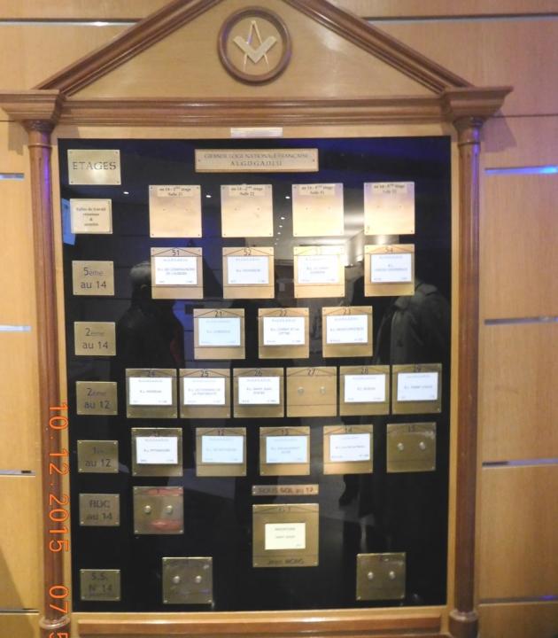 Ambas, grandes y solemnes actividades, como la Tenida anual en conmemoración del 102º Aniversario de la Gran Logia Nacional Francesa (Grande Loge nationale française (GLNF)), así como la solemne instalación del M.·.R.·.H.·. Jean Pierre Servel, como su Gran Maestro, se realizaron en su sede institucional de la 12 rue Christine de Pisan, 75017 Paris, las actividades programadas se desarrollaron del jueves 3 al sábado 5 de diciembre de 2015, siendo la ceremonia central la Gran Tenida solemne de sábado 5 de diciembre de 2015, convocado para las 19:30 horas.