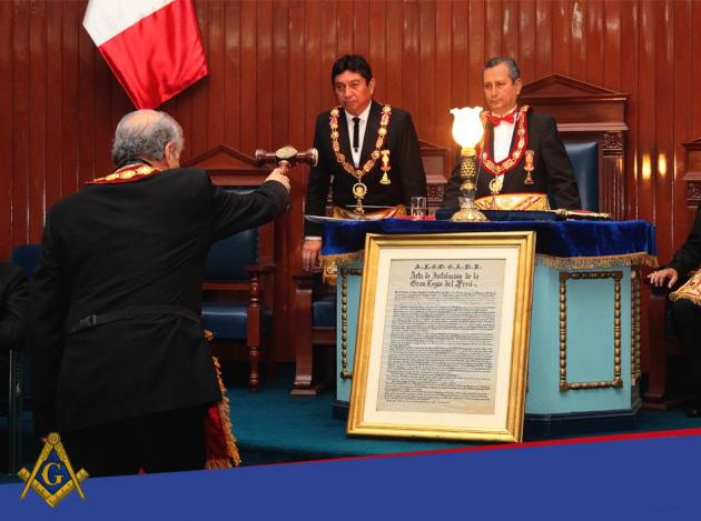 En esta nota, instantes cuando el M:.R:.H:. César Bazán Naveda es instalado como el nuevo Gran Maestro de la Orden para el periodo masónico 2016-2018, asi también el R:.H:. Tulio Manrique Trelles, como Vice Gran Maestro de la Orden, y todo esto realizado en la Gran Tenida Anual del 134° Aniversario de la Gran Logia del Perú.