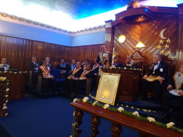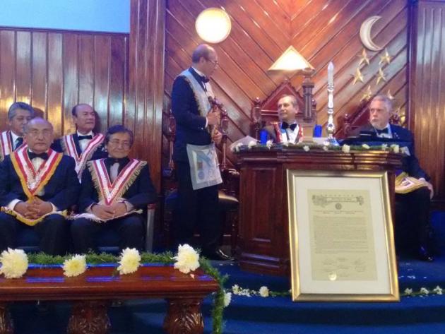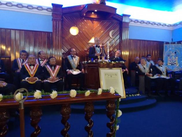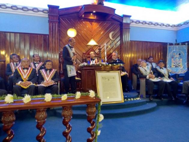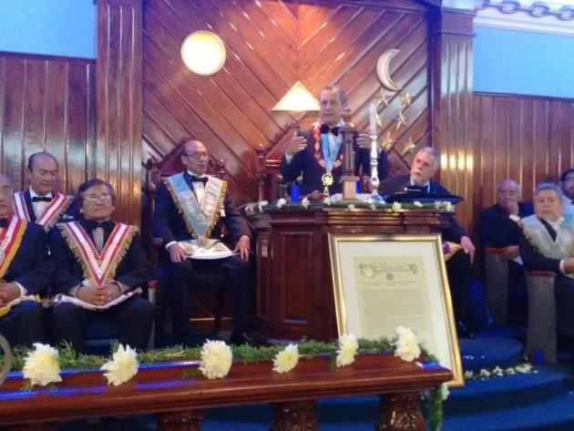 Esta ceremonia se realizó en el Templo "Francisco Javier Mariátegui" 2do. piso de la sede histórica Jesús García Maldonado, dirigido por su V:.M:. R:.H:. Galindo Diógenes Solis Medina y sus VVig:. los QQ:.HH:.Shermany Arones Guevara y Carlos Kohatsu Yoshida.
