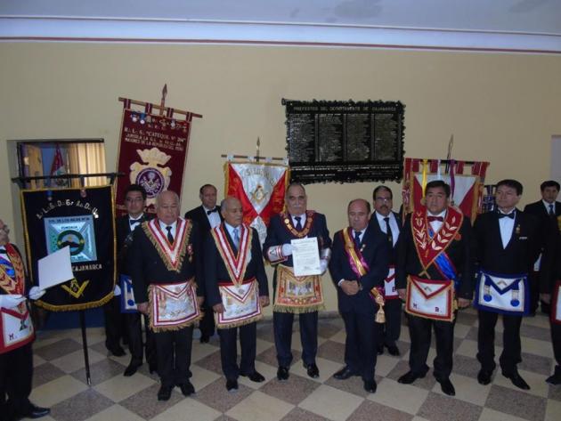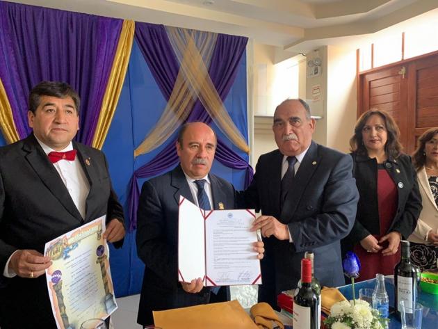 El Gran Maestro, Mario infante Sáenz y José Dolores Chávez Venerable Maestro de la Logia Catequil de Cajamarca en el Aniversario del Colegio San Ramón.